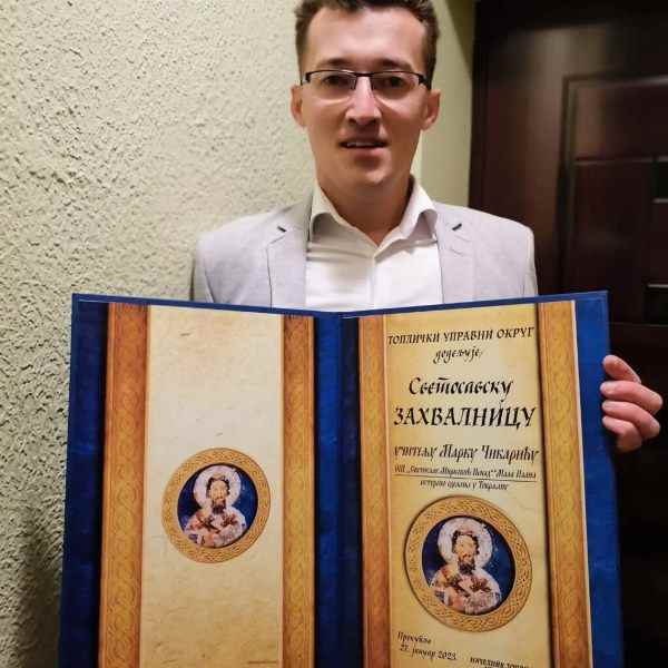 Колектив ОШ „Светислав Мирковић Ненад“ честита колеги Марку Чикарићу на добијеној Светосавској захвалници Топличког управног округа, и признању Црвеног крста Србије за хуманитарни рад.