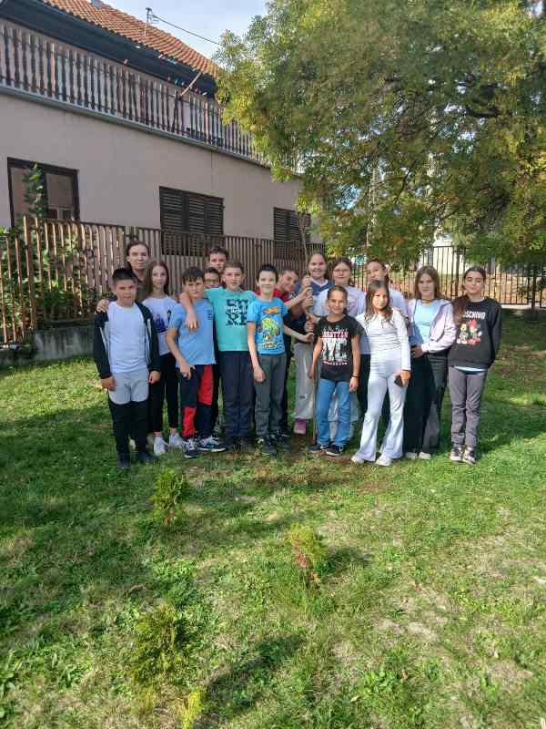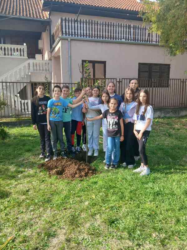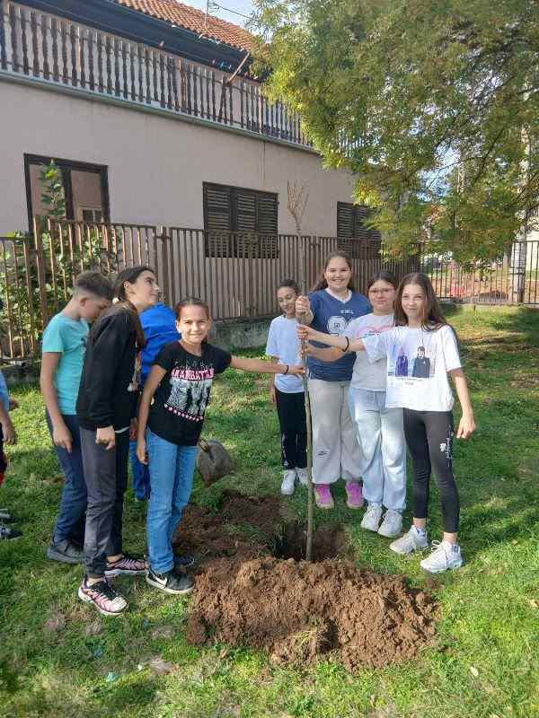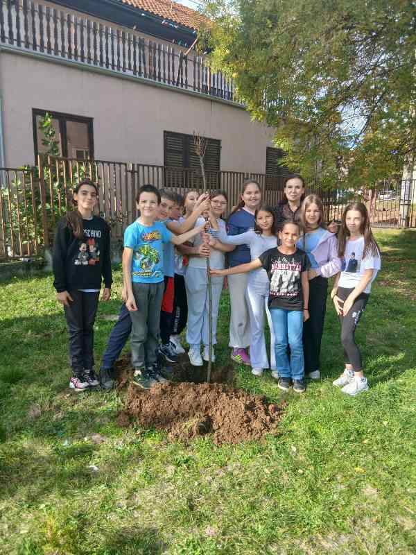 На иницијативу Тима за екологију и естетско уређење школе, у организацији наставнице географије Јасмине Марјановић, 30. октобра 2025. године ученици петог разреда посадили су лоптасти багрем, (Robinia umbraculifera).